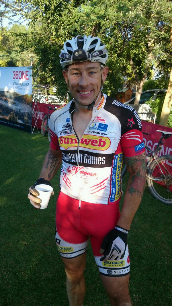HASSELT – Het dringt nog niet helemaal tot hem door. Hij is inmiddels terug uit Zuid-Afrika. Weer aan het werk bij Ridley Bikes. Maar wat hij in Oudtshoorn allemaal gepresteerd heeft, komt nog niet helemaal bij hem binnen. Afgelopen weekeinde won Jean Biermans in het Zuid-Afrikaanse plaatsje ‘The 36ONE Challenge’, een mountainbikewedstrijd over een lus van 361 kilometer, met 5500 hoogtemeters. Biermans deed dat in stijl: hij verbeterde het parcoursrecord met 3 uur en reed een tijd van 14 uur en een kwartier. “Ze noemen me daar nu The Machine”, lacht de 39-jarige Limburger. “In hun ogen ben ik echt een held. Ze zijn trots op me en vinden het een ongelooflijk verhaal.”