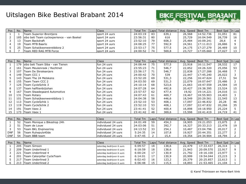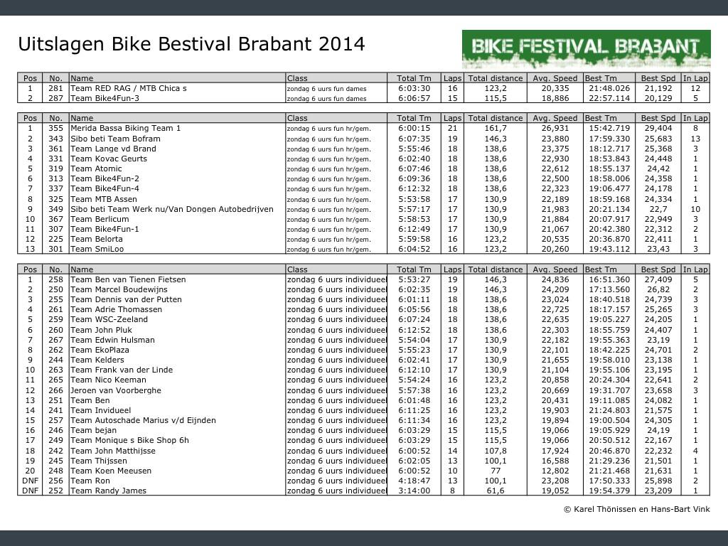 Officiële uitslagen Bikefestival Brabant