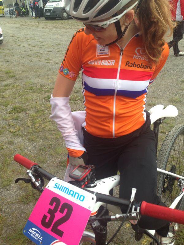 Van den Boogert droeg tijdens haar race een bandje om haar arm, ter nagedachtenis aan Annefleur Kalvenhaar. Foto: KNWU