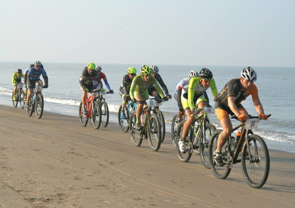 Mijn beste start van het jaar brengt me ook meteen in de problemen. Ik rij tussen de klasbakken en het tempo ligt hoog. Mijn hartslag ook. Ik ben blij dat al het rondspetterende zand mijn Garmin onleesbaar maakt, maar als ik goed kijk om te zien waar dat kloppende gevoel in mijn keel vandaan komt, zie ik waardes van 185, 188 en zelfs 190. Na zijn mislukte start komt Bart knoephard voorbijzetten. Ik spring in zijn wiel, maar dat hou ik niet lang vol. Het strand is maar op een smal stuk goed te berijden en bovenal erg zacht. Een groot contrast met twee jaar terug. Met moeite gaat het boven de dertig per uur. Mijn benen beginnen al vol te lopen. Voordat ik me realiseer dat starten op deze manier niet verstandig is, krijg ik al de rekening gepresenteerd.