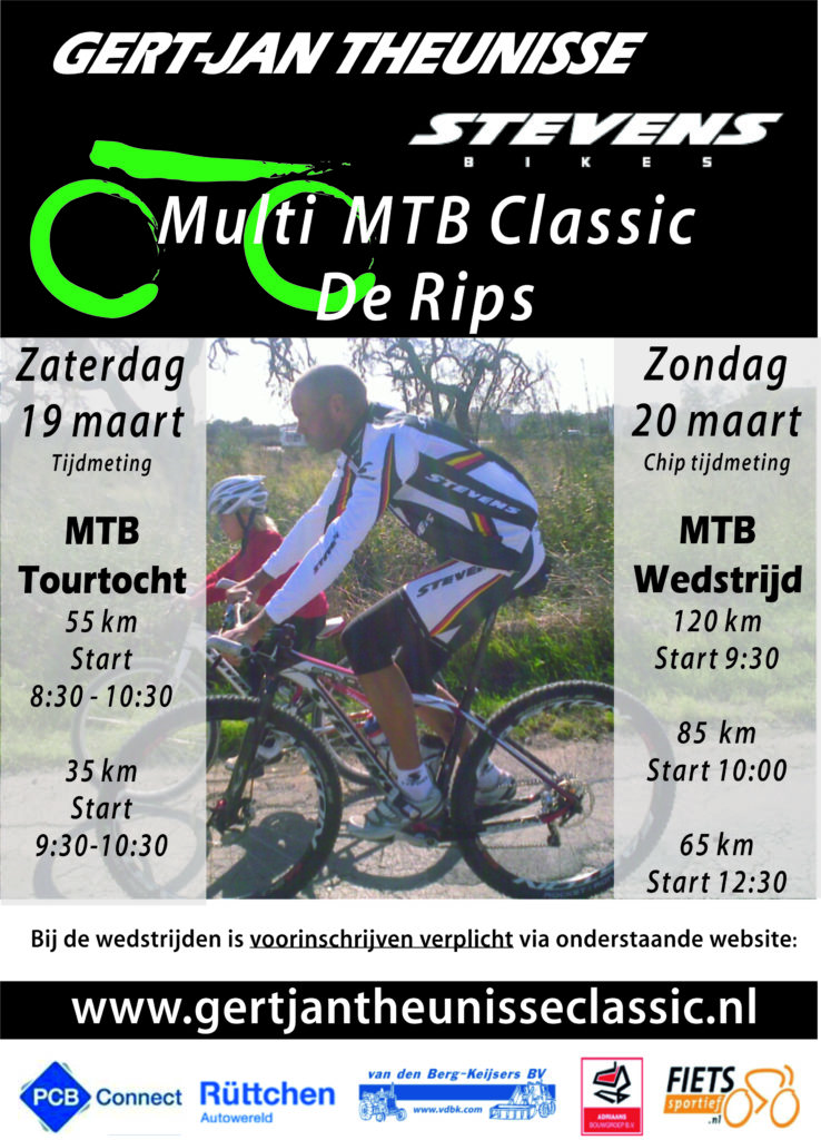 DE RIPS – Het was al vaste prik voor veel marathonbikers: de Gert-Jan Theunisse Classic, met een lange mountainbiketoertocht op zaterdag en een wegtoertocht op zondag. Die laatste is door de organisatie komende editie vervangen door een heuse mtb-marathon. Op zaterdag 19 maart is het…